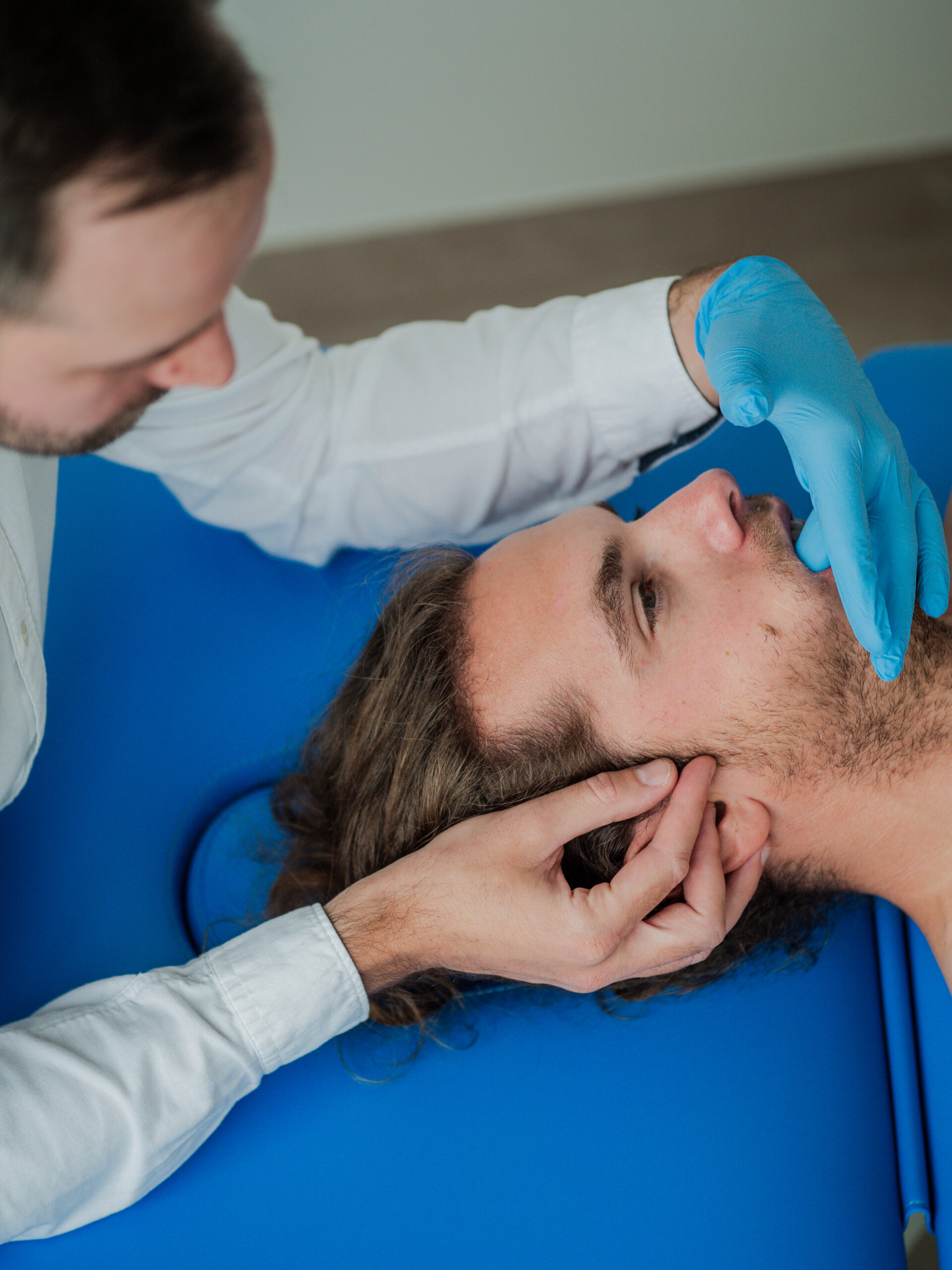 - Ocena stanu pacjenta: Osteopata zaczyna od dokładnego wywiadu medycznego i oceny stanu zdrowia pacjenta, uwzględniając historię problemów stomatologicznych, napięcia mięśniowego, urazów oraz postawy ciała.